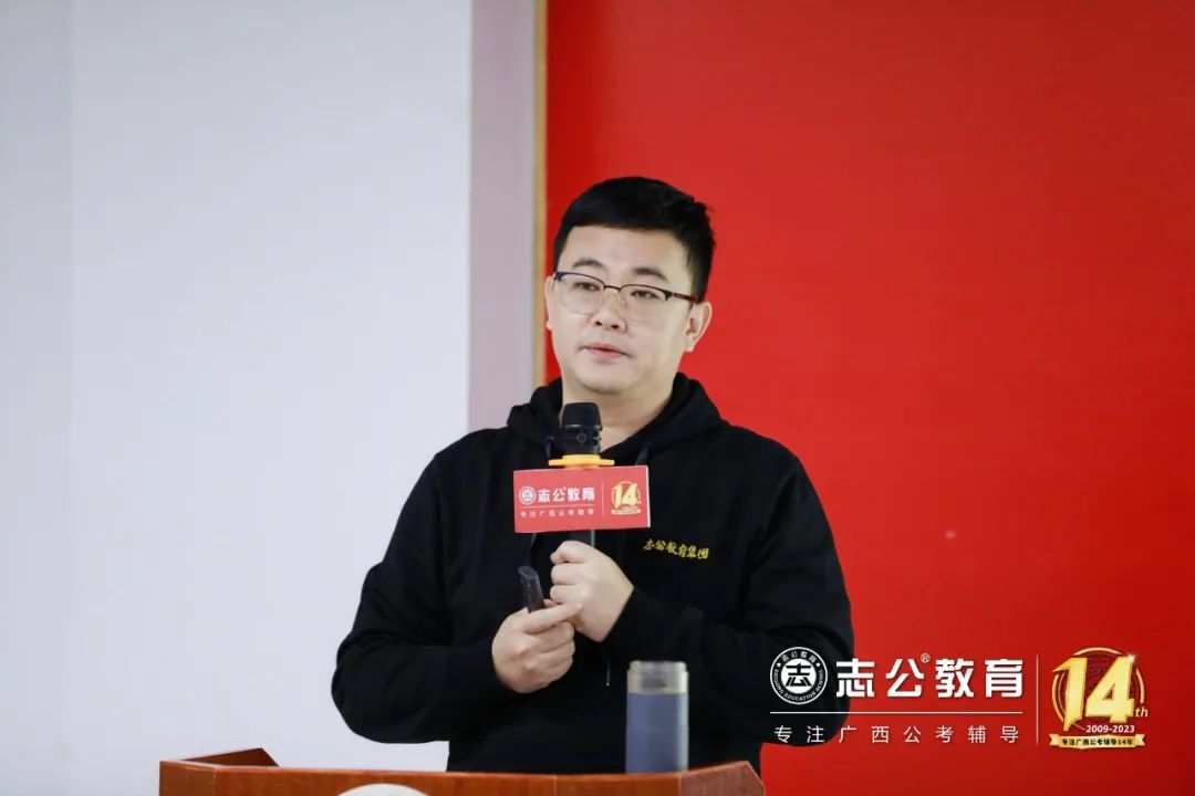 16日上午9點(diǎn)許,董事長(zhǎng)李勇發(fā)表致辭,他認(rèn)為:“聚焦是一種力量”,對(duì)于志公教育而言,聚焦就是專(zhuān)注廣西公考輔導(dǎo)。