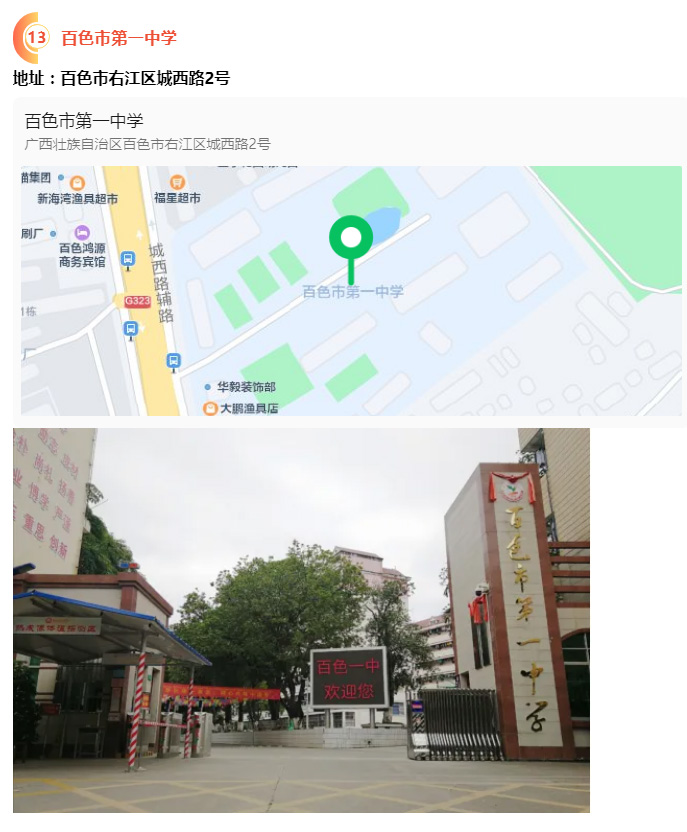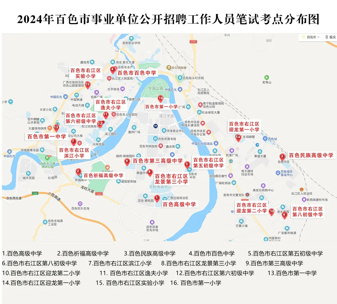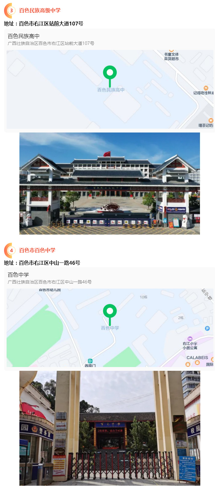 2.請?zhí)崆笆煜た键c(diǎn)地址,做好路線、住宿的安排。本次考試參考人數(shù)較多,考點(diǎn)分布分散,建議考生考前實(shí)地察看考點(diǎn),確認(rèn)考點(diǎn)入口位置,防止走錯(cuò)考點(diǎn)。請充分考慮考點(diǎn)周邊交通通行情況和停車場地容量,合理安排出行方式,預(yù)留充足時(shí)間,確??荚嚠?dāng)天按時(shí)到達(dá)。另外,考試期間百色市及各考點(diǎn)學(xué)校周邊的住宿比較緊張,請?zhí)崆邦A(yù)定。