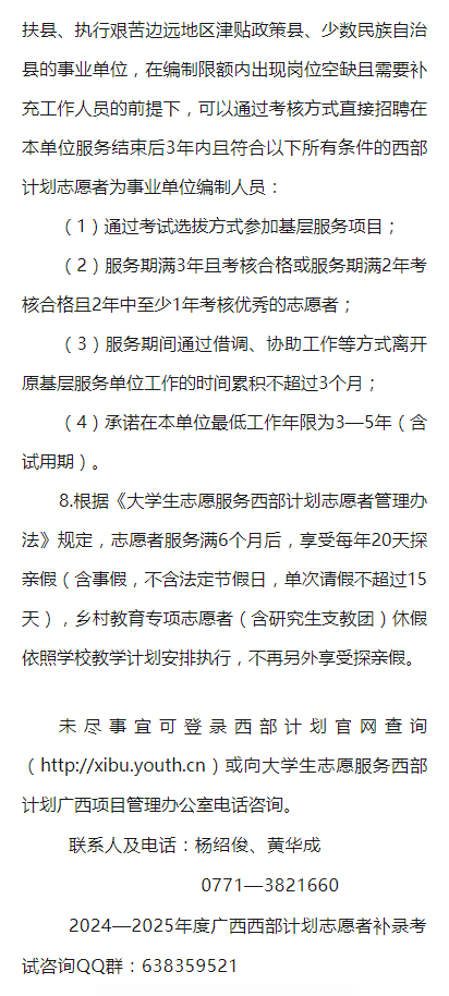 2024—2025年度廣西大學(xué)生志愿服務(wù)西部計(jì)劃補(bǔ)錄公告