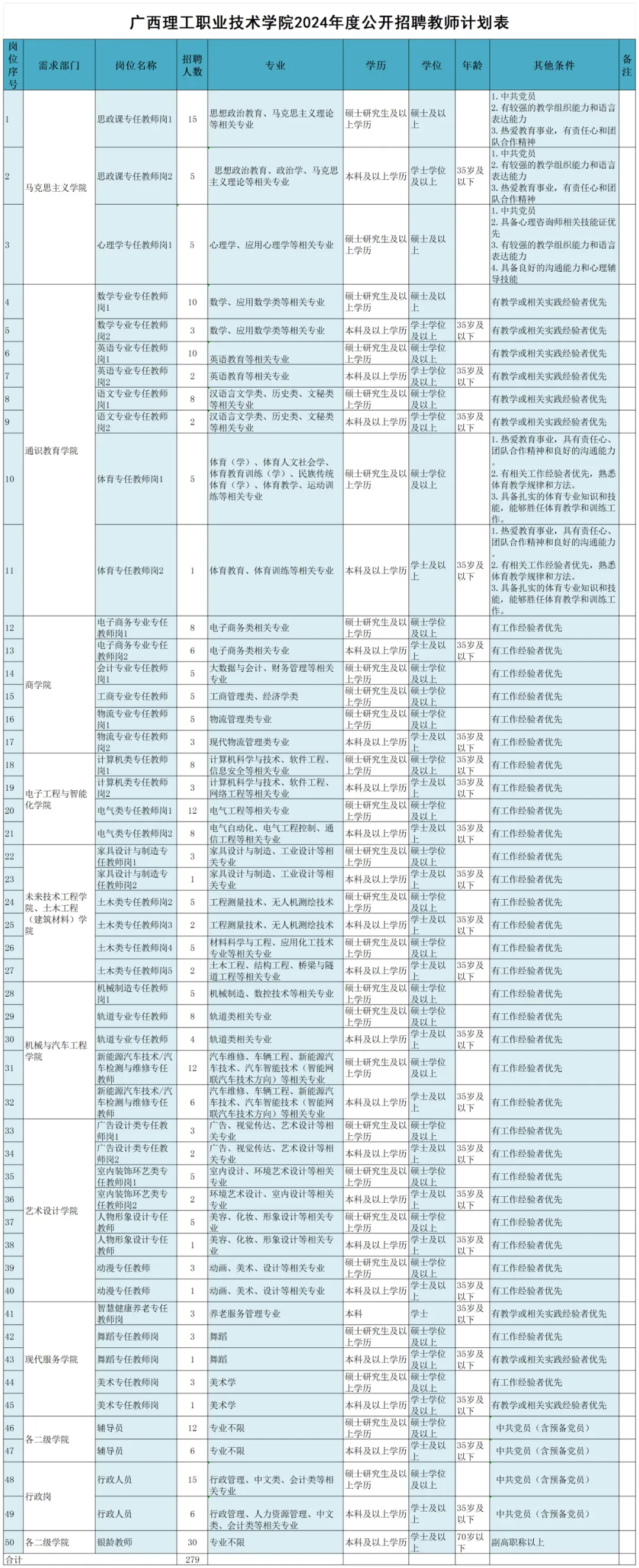 2024年廣西理工職業(yè)技術(shù)學(xué)院招聘教師279人