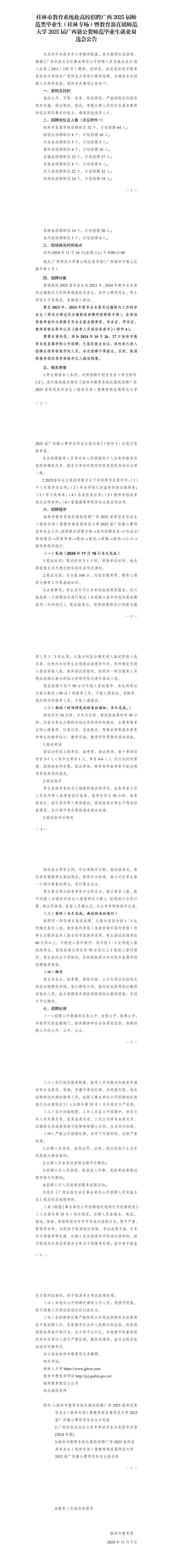 桂林市教育系統(tǒng)赴高校招聘廣西2025屆師范類畢業(yè)生(桂林專場)209人公告