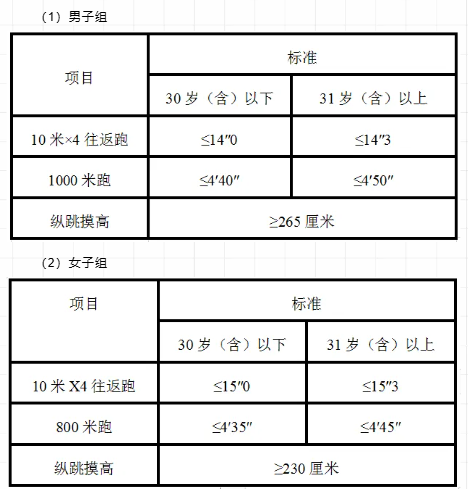 研究生及以上學歷報考人員參加體能測評三項內容中有兩項達標的,視為合格。非研究生及以上學歷報考人員體能測評三項全部達標方為合格。