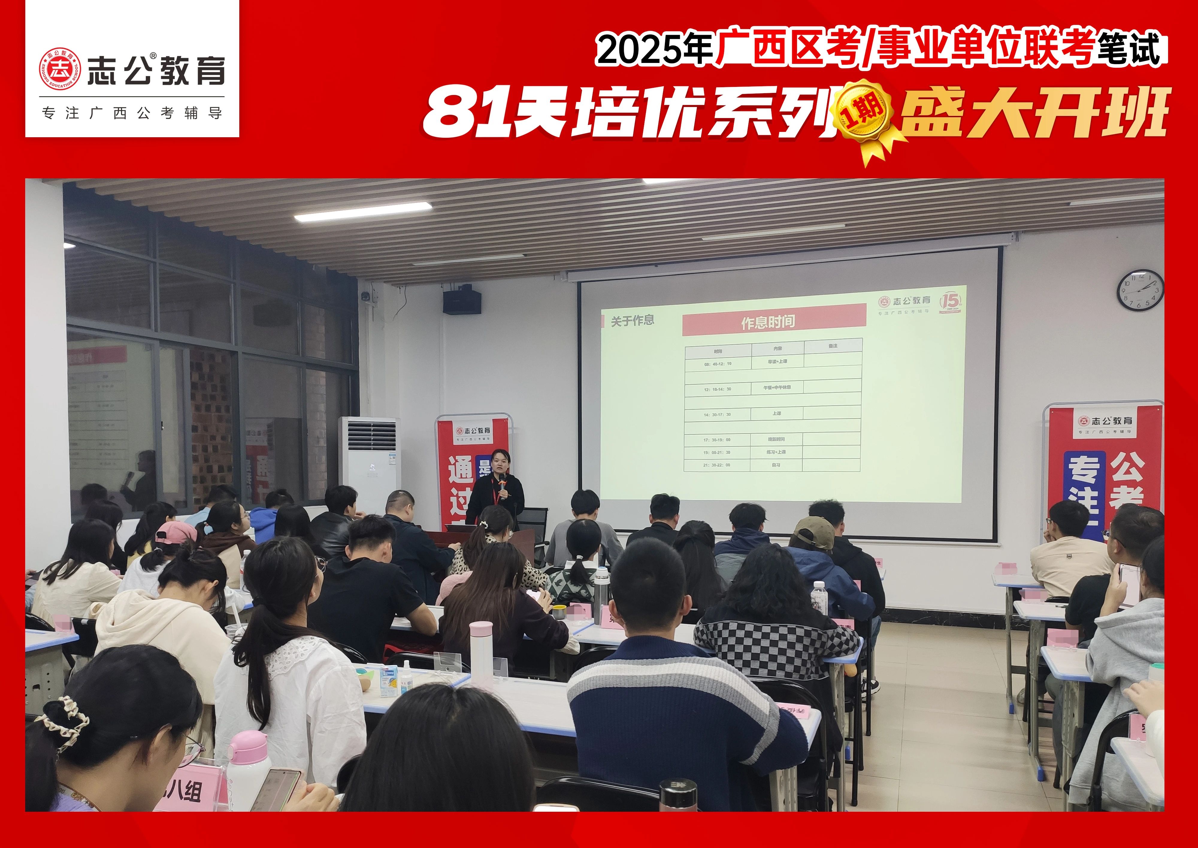 專屬于廣西考公人2025上岸直通車啟程,志公教育2025年81天1期基地訓(xùn)練營(yíng)12月3日盛大開班,讓我們一起來到南寧志公全封閉學(xué)習(xí)基地現(xiàn)場(chǎng),感受本次81天班的火爆開營(yíng)的盛大場(chǎng)面!