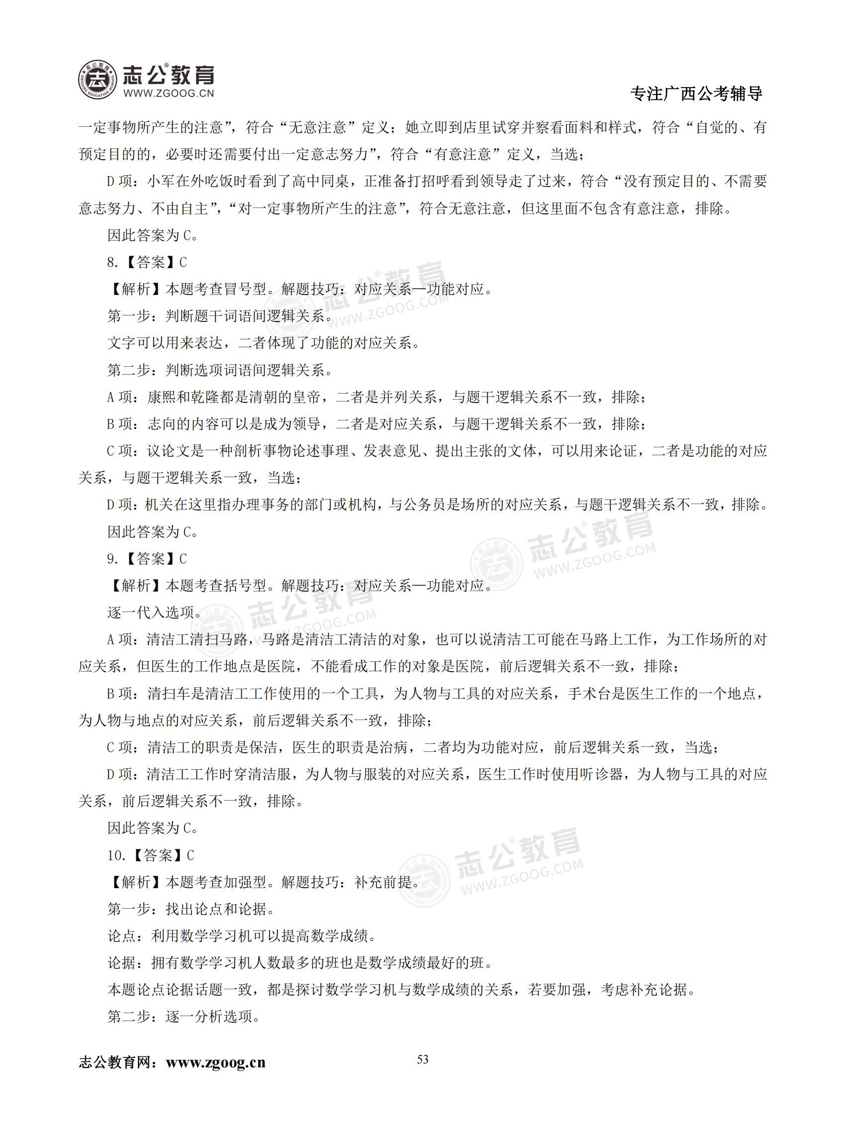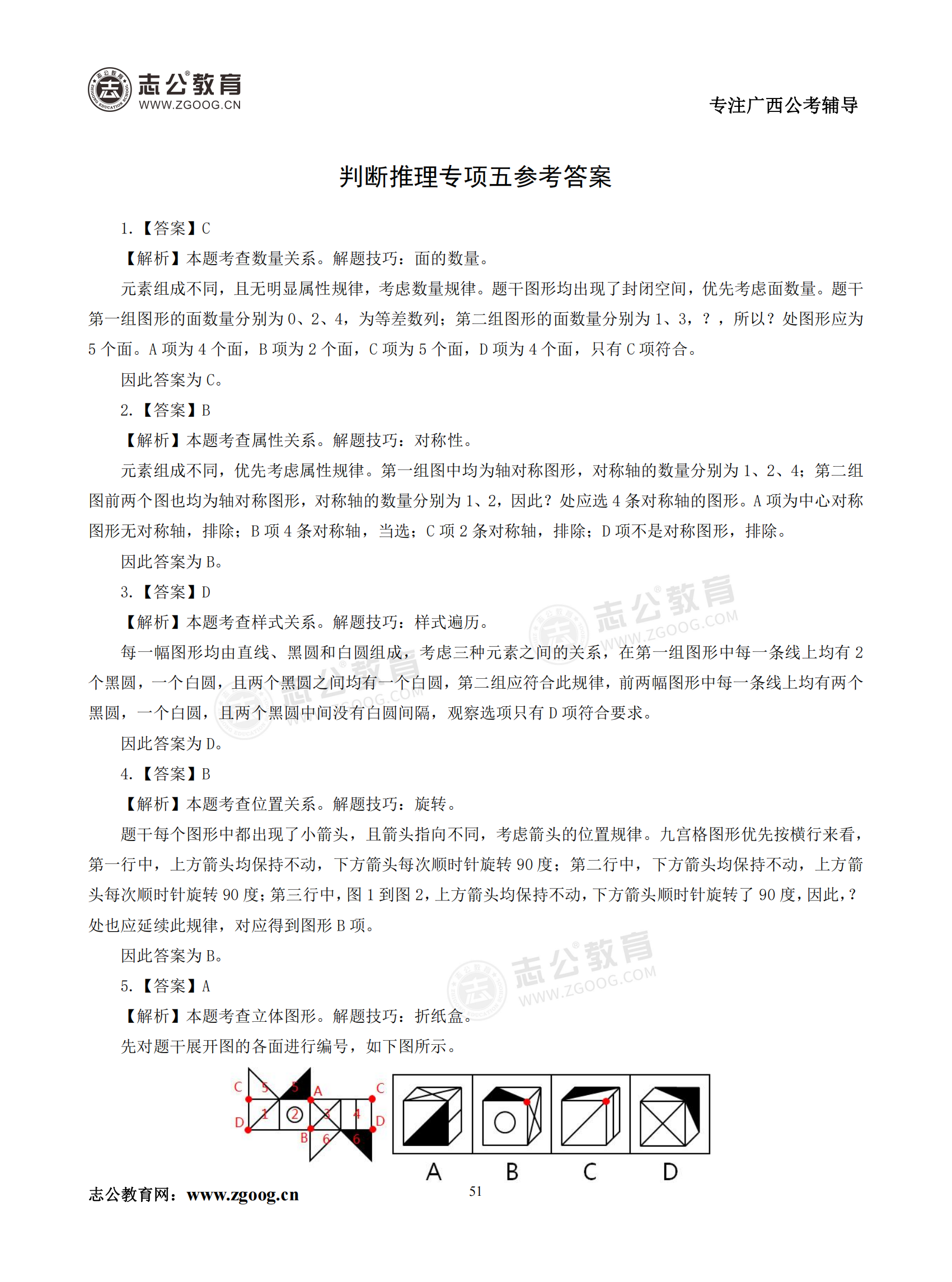 【公考模塊練習】判斷推理題五(答案)