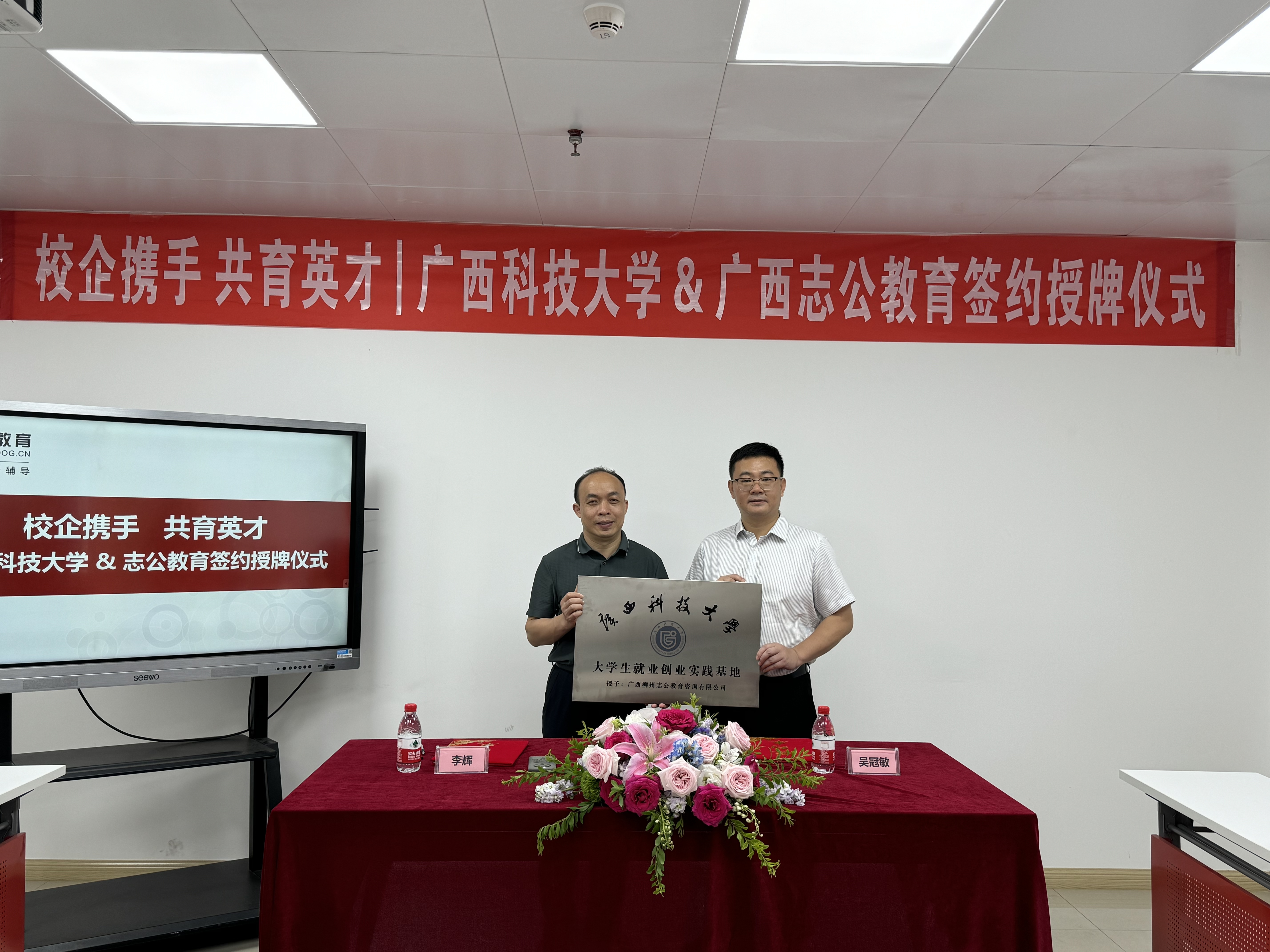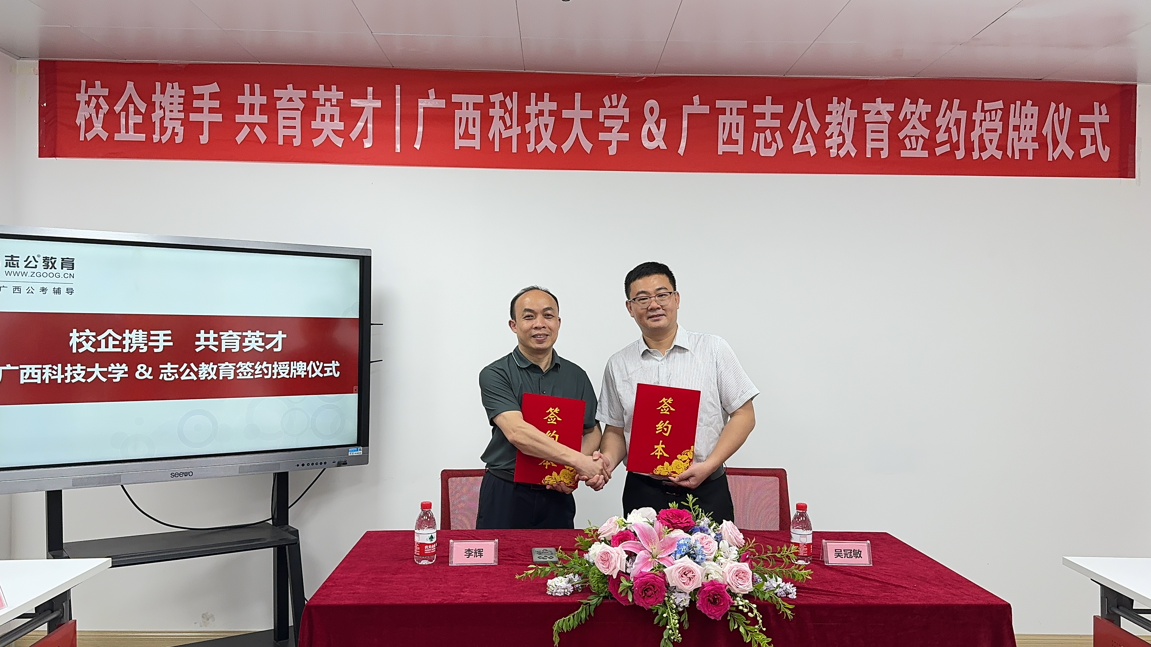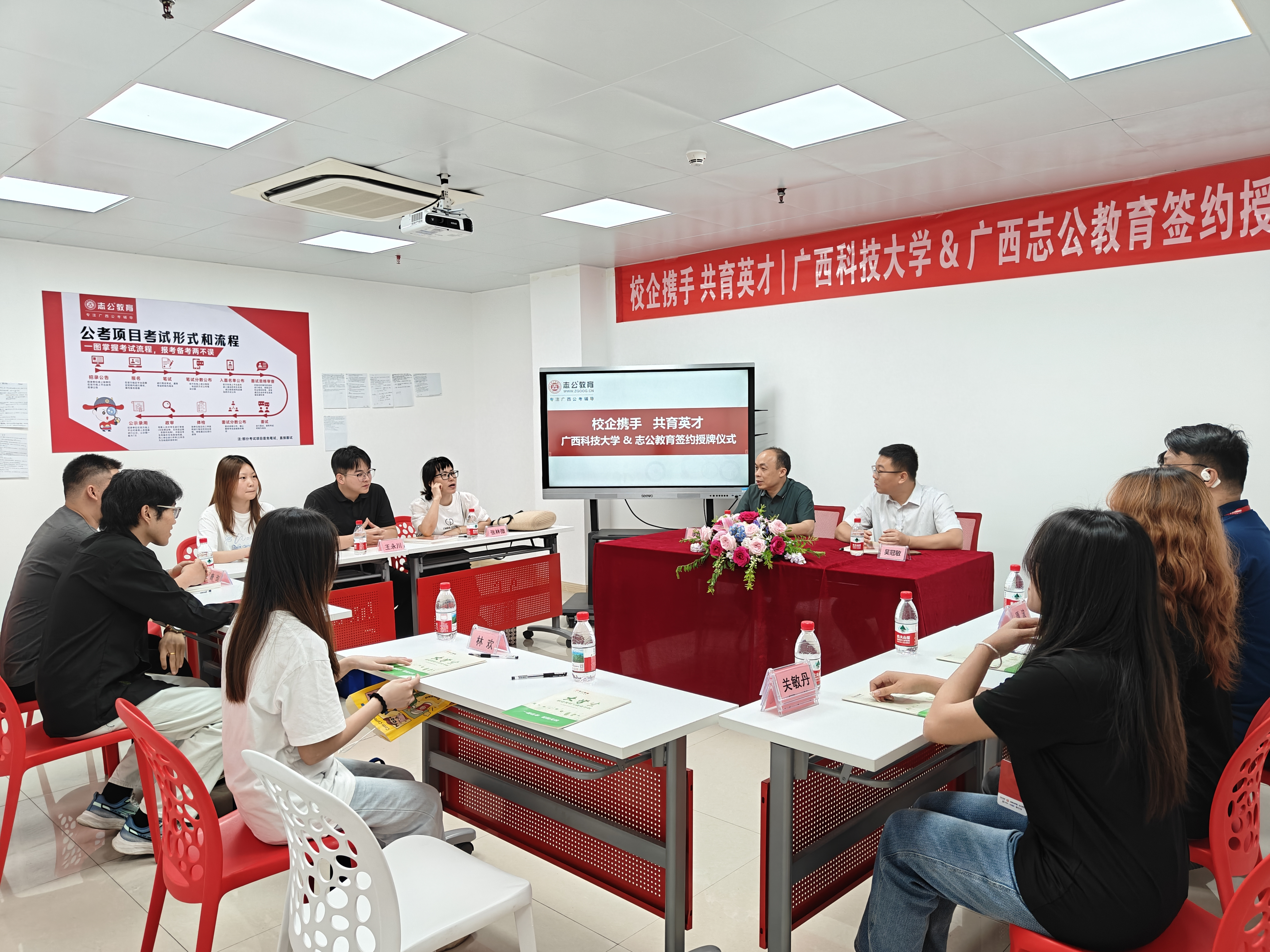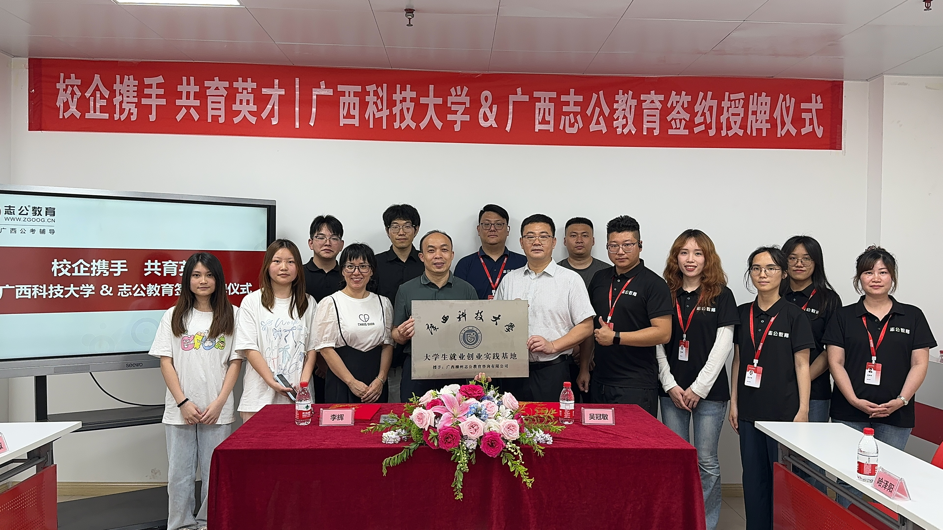 2025年5月9日,志公教育柳州分校與廣西科技大學(xué)外國語學(xué)院在深入交流與友好協(xié)商的基礎(chǔ)上,于廣西科技大學(xué)成功舉行戰(zhàn)略合作簽約儀式。此次活動(dòng)由志公教育CBG總經(jīng)理吳冠敏先生帶隊(duì),廣西科技大學(xué)外國語學(xué)院黨委書記李輝、廣西科技大學(xué)"種夢領(lǐng)航"工作室負(fù)責(zé)人張林微及師生代表共同參與,標(biāo)志著雙方在產(chǎn)教融合、人才培養(yǎng)及大學(xué)生就業(yè)創(chuàng)業(yè)領(lǐng)域的合作邁入新階段。