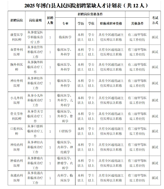 1.《2025年博白縣人民醫(yī)院招聘緊缺人才報名登記表》(附件);