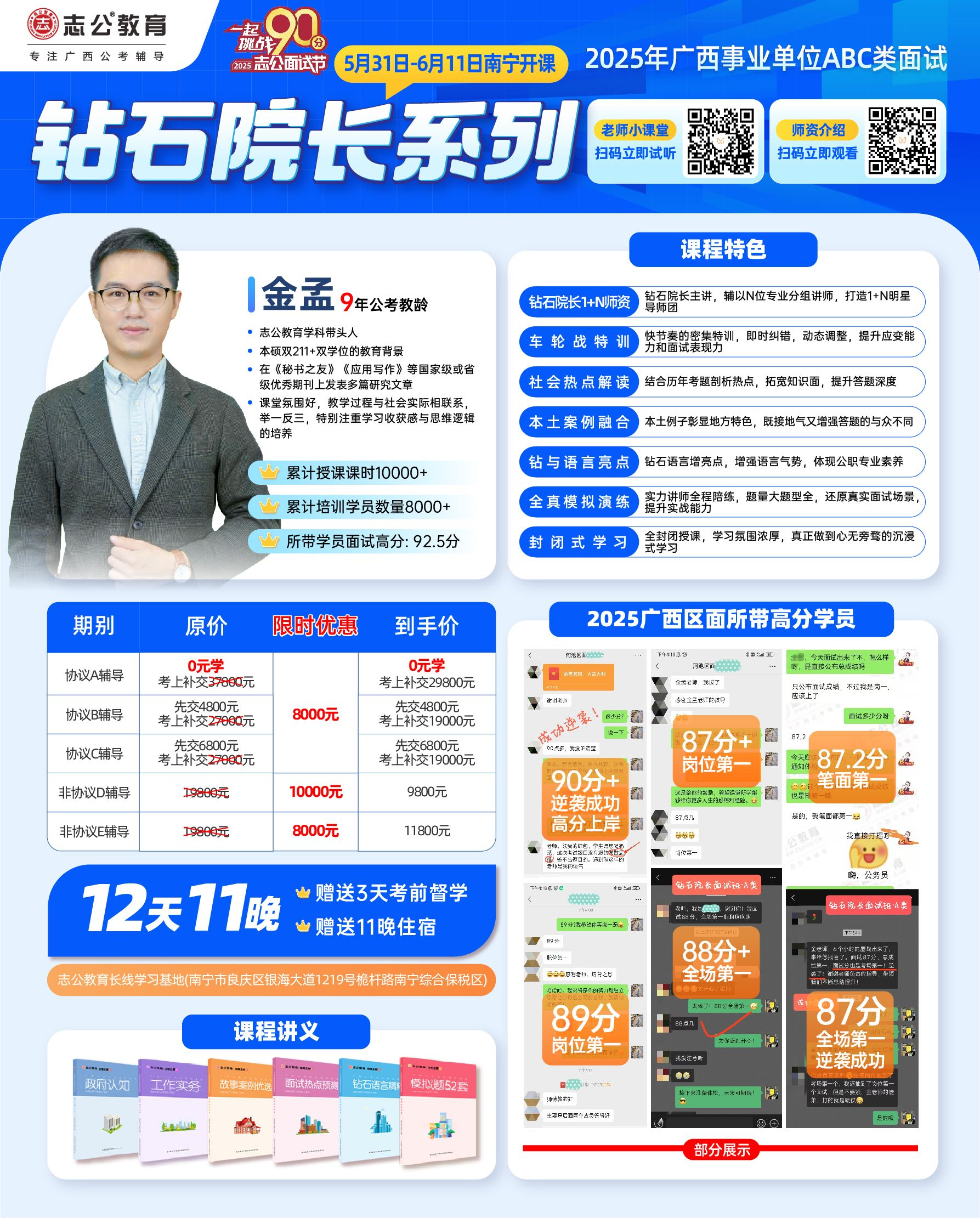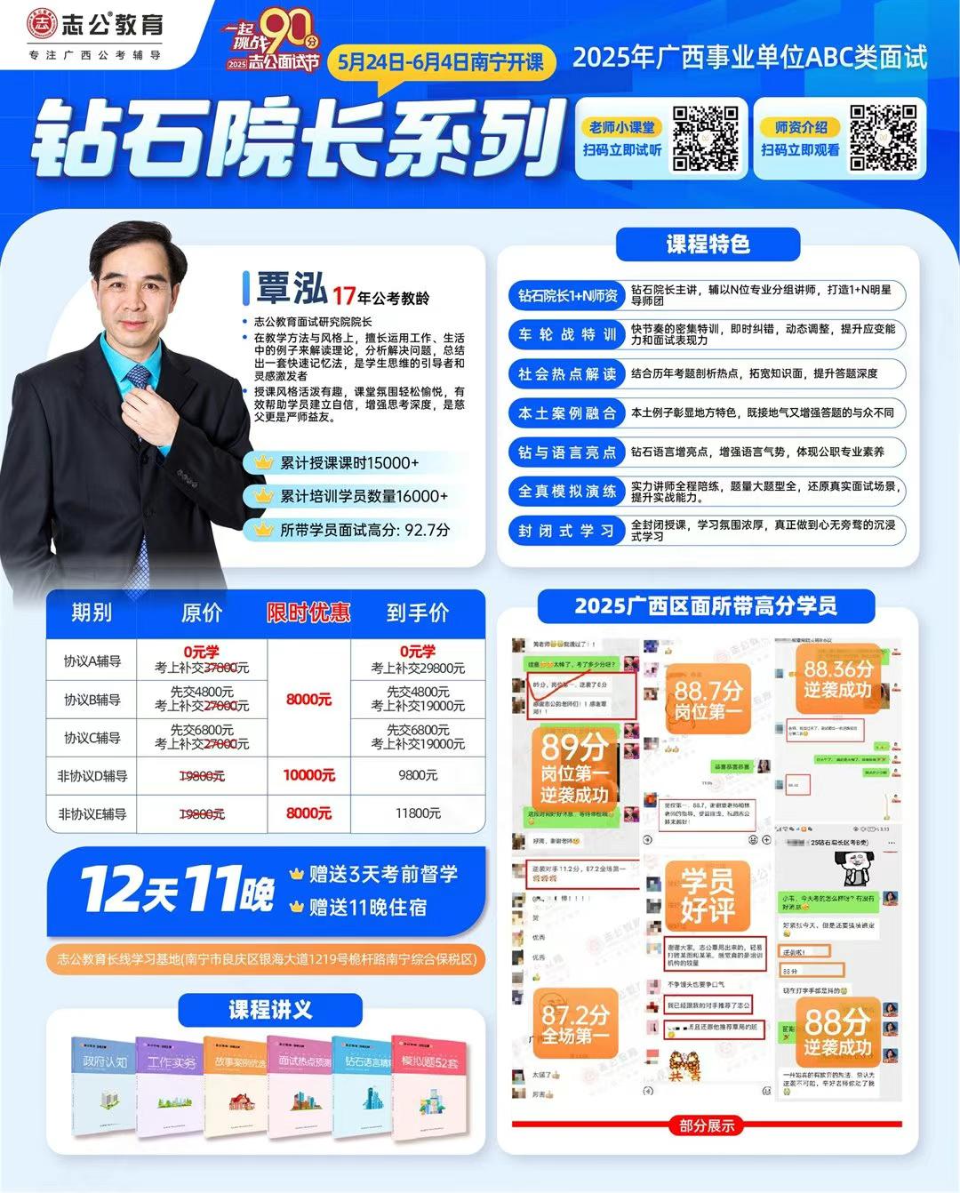 2025年廣西事業(yè)單位面試即將到來!面對激烈的競爭,志公教育重磅推出鉆石院長系列課程,分別由志公教育面試研究院院長覃泓院長和志公教育資深講師金孟老師主講,為考生提供面試提升方案,助力考生攻克難關(guān)!