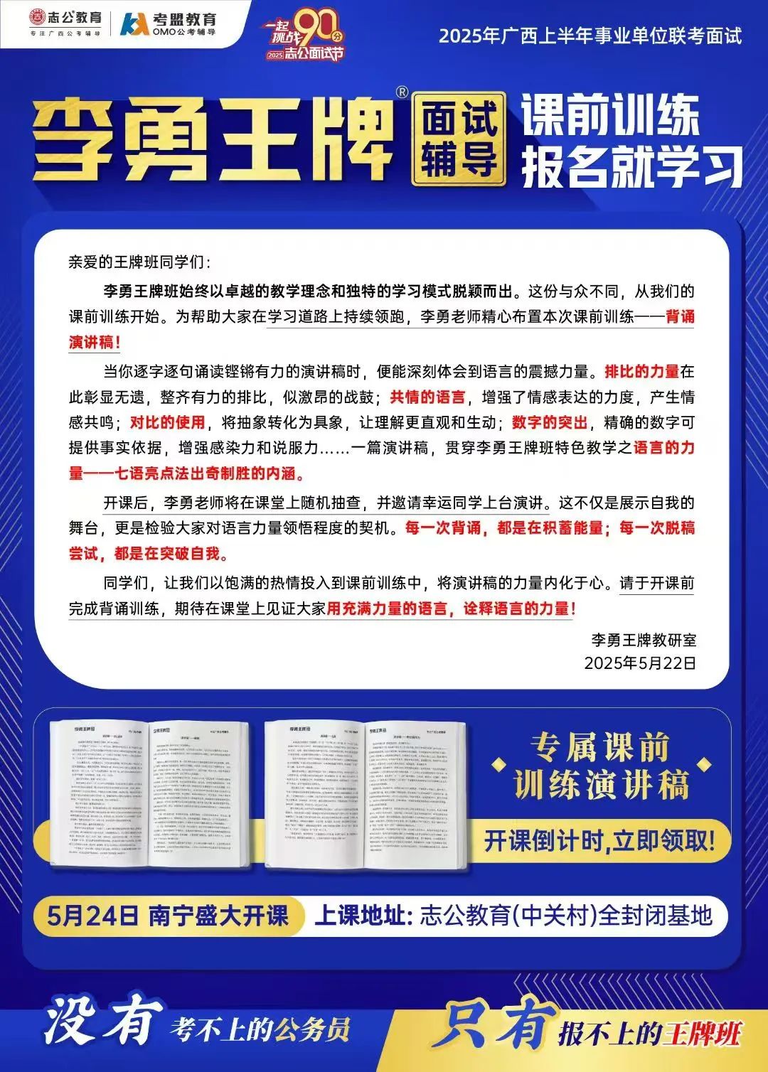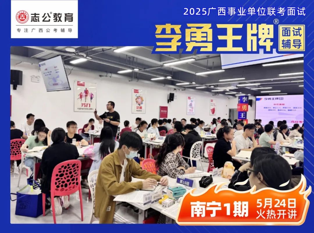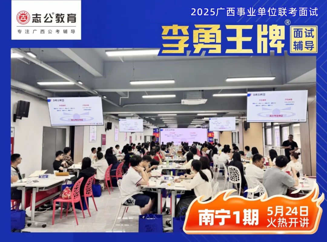 繼志公教育&李勇王牌®班教研室5月17日發(fā)布修改招生規(guī)則的通知后,各位未來“橘”長們,翹首以盼的時刻終于來啦!5月24日,志公教育李勇王牌®班——改革后的首個開班,在南寧火熱啟幕!現(xiàn)場學習氣氛爆棚,李勇老師與學員高頻互動,學員們直呼 “學到停不下來”!這不僅是一場面試特訓,更是一次思維與能力的雙重蛻變!