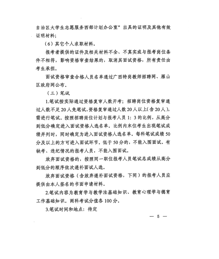 桂林市雁山區(qū)2025年特崗教師招聘公告
