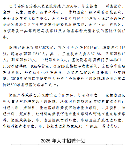 巴馬瑤族自治縣人民醫(yī)院2025年人才招聘公告