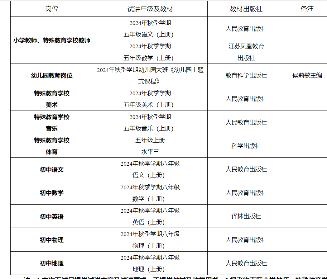 注:1.本次面試只提供試講內(nèi)容及試講要求,不提供教材及教學(xué)用書;2.報考欽南區(qū)小學(xué)教師、特殊教育學(xué)校教師崗位的考生可自由選擇語文或數(shù)學(xué)進行試講。