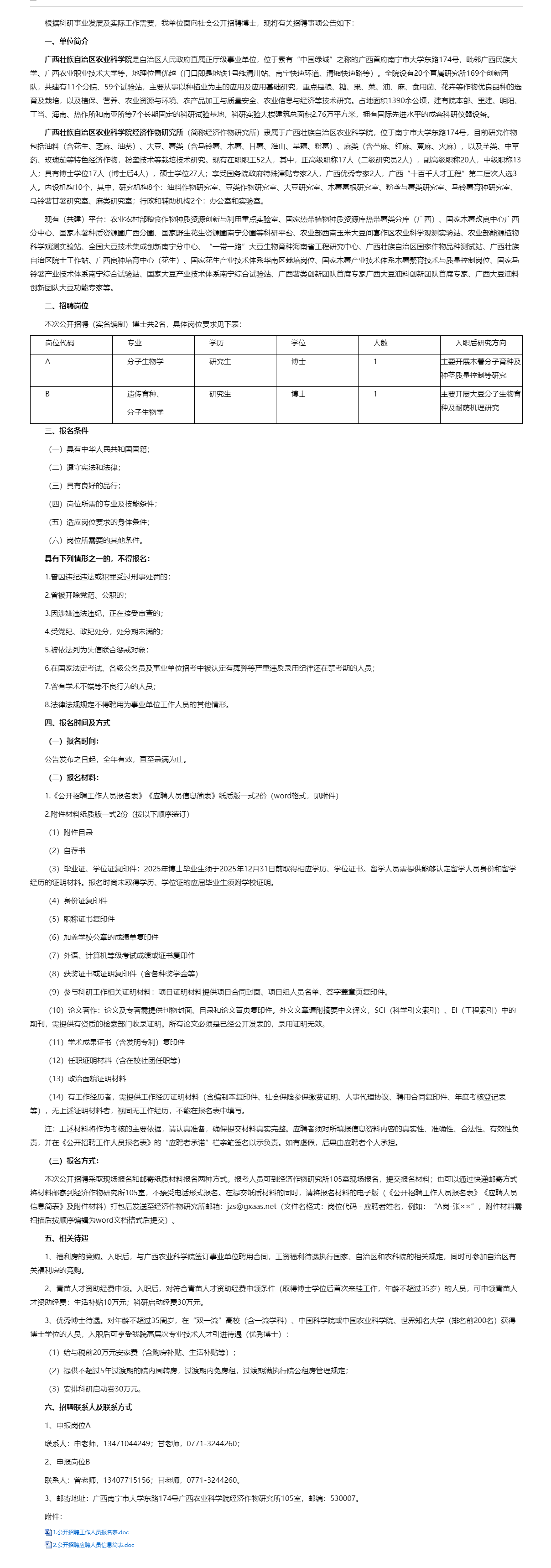原文標(biāo)題:廣西農(nóng)業(yè)科學(xué)院經(jīng)濟作物研究所2025年博士公開招聘公告