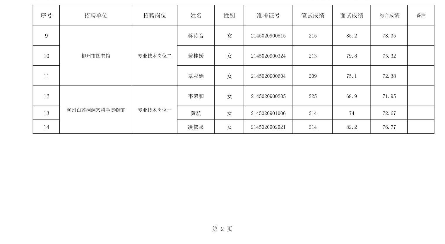 2025年柳州市文化廣電和旅游局所屬事業(yè)單位公開(kāi)招聘成績(jī)公布表