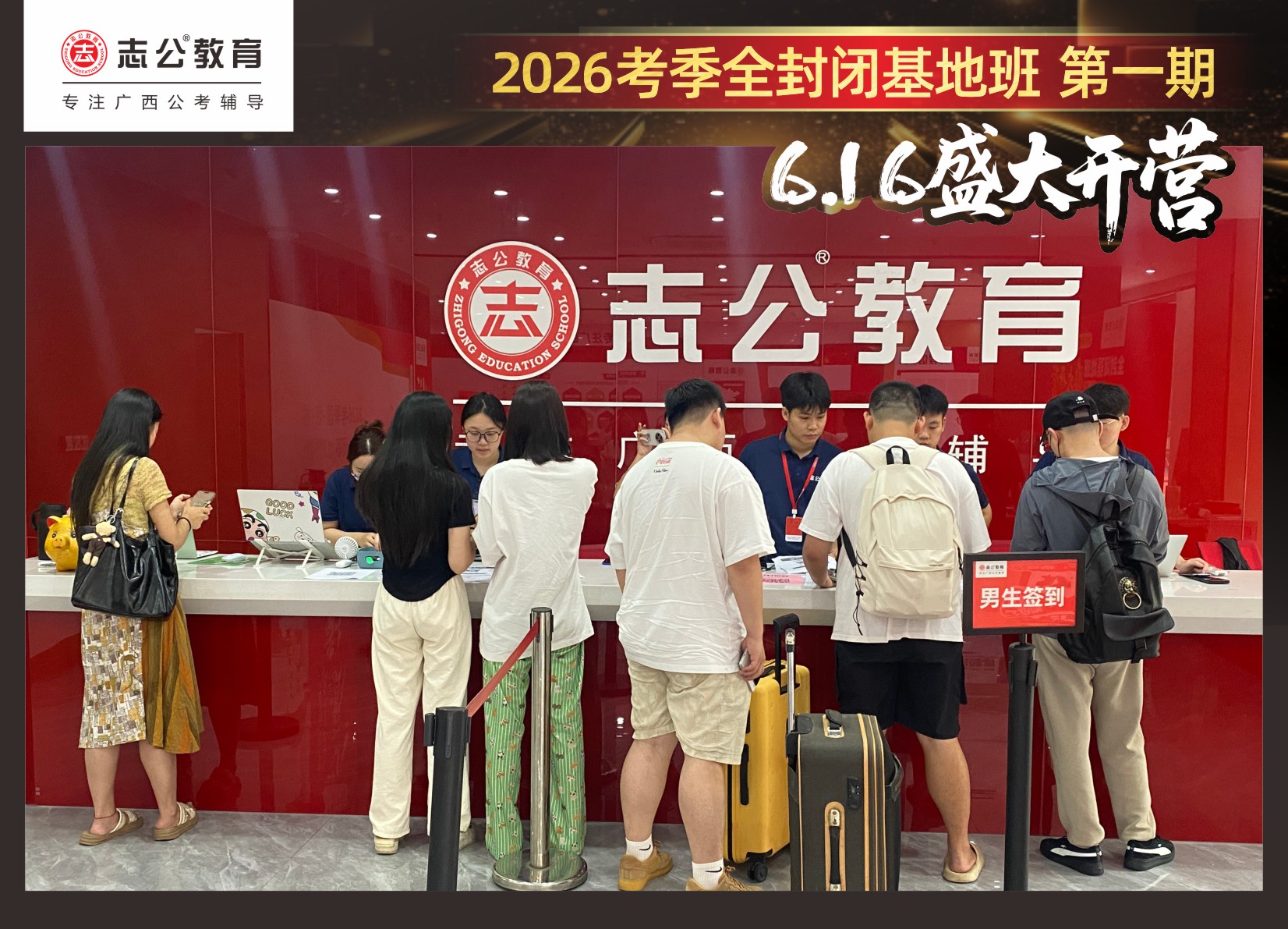 由于這段時(shí)間受臺(tái)風(fēng)影響,南寧迎來下雨天,但學(xué)員們滿懷先一步備考,快一步成功圓夢(mèng)的滿滿炙熱信心,早早就在志公教育(中關(guān)村)全封閉基地前臺(tái)等候,6月16日,志公教育26考季全封閉基地班第1期的學(xué)員們齊聚一堂,正式開啟他們的公考備戰(zhàn)之旅。簽到環(huán)節(jié)作為基地班課程的第一站,不僅是對(duì)學(xué)員們的歡迎儀式,更是他們邁向夢(mèng)想的第一步。