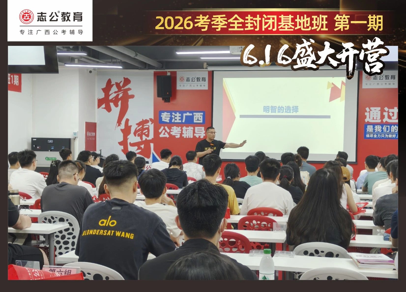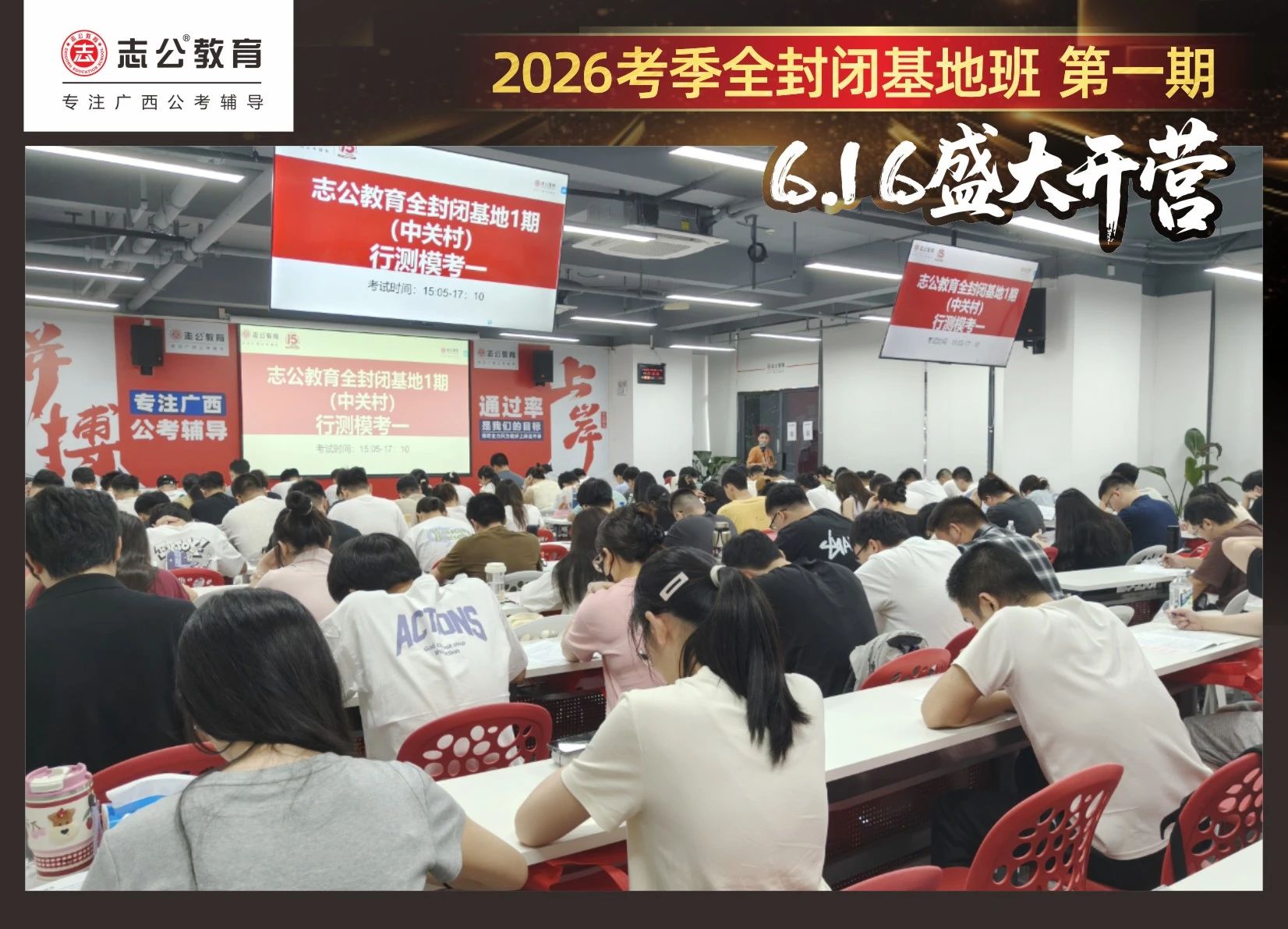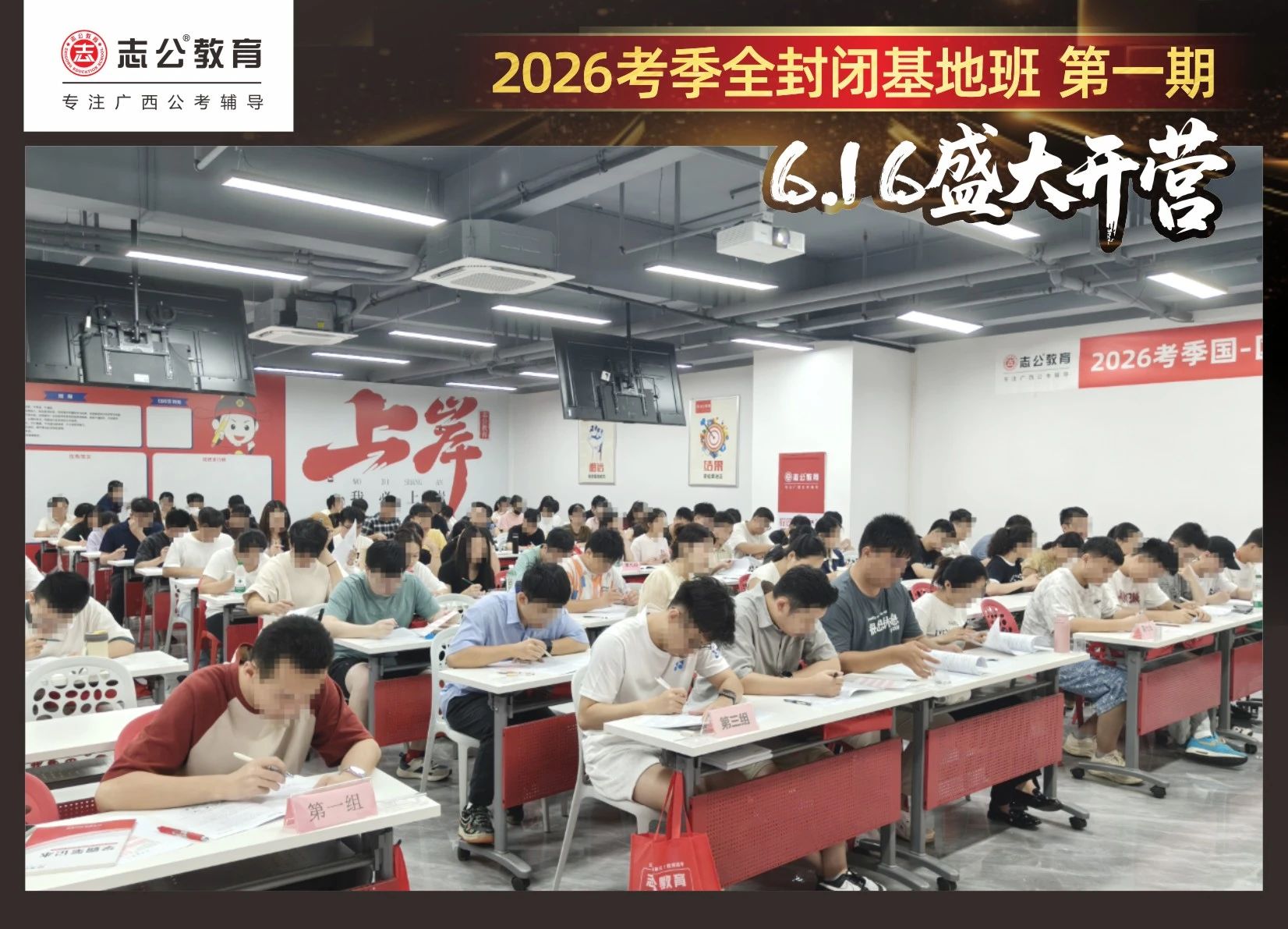 大家稍作休息之后,就是咱們期待已久的開班典禮啦!學(xué)員們?cè)诎嘀魅蔚囊龑?dǎo)下分組就坐。大家目光灼灼,熱情高漲,迫不及待想要開啟學(xué)習(xí)模式。看這座無虛席的盛況,志公26考季全封閉基地班第1期課程實(shí)力名不虛傳,各位學(xué)員用飽滿的熱情和積極的態(tài)度迎接此次課程的開展,期待大家能夠完成自己的蛻變和成長!