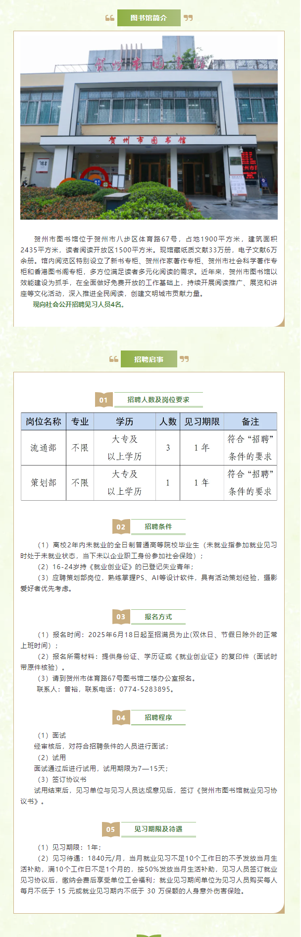 2025年賀州市圖書館招聘見習人員4人