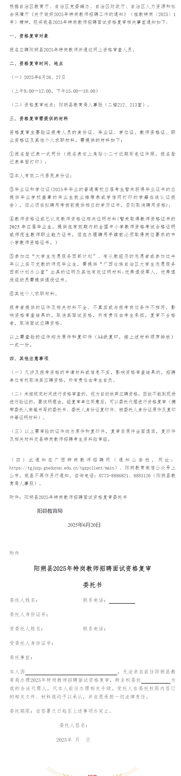 陽朔縣2025年特崗教師招聘面試資格復(fù)審?fù)ㄖ?/h3>