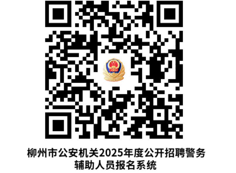 報(bào)名方式:通過掃描二維碼進(jìn)入報(bào)名網(wǎng)站報(bào)考,考生也可登錄柳州市人力資源和社會(huì)保障局網(wǎng)站(http://rsj.liuzhou.gov.cn)或進(jìn)入“柳州人社”微信公眾號、“柳州警方”微信公眾號關(guān)注相關(guān)招聘信息進(jìn)行報(bào)考,每人限報(bào)一個(gè)職位。