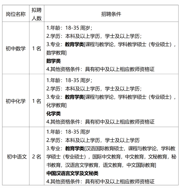 (六)18周歲以上、35周歲以下。有教學經(jīng)驗豐富、碩士研究生或中級職稱以上的應(yīng)聘人員,年齡可適當放寬到45周歲。