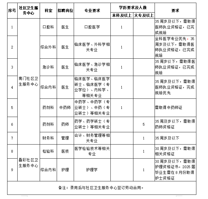 根據(jù)社區(qū)衛(wèi)生服務中心工作需要,現(xiàn)將2025年度(第二批)招聘崗位及有關(guān)事項公布如下: