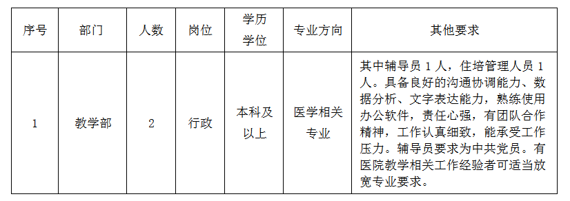 根據(jù)醫(yī)院的發(fā)展需求,現(xiàn)公開招聘編外工作人員2名,具體要求如下:
