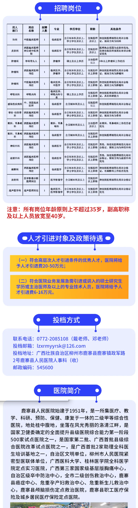 原文標(biāo)題:誠(chéng)聘英才——鹿寨縣人民醫(yī)院2025年度人才招聘!