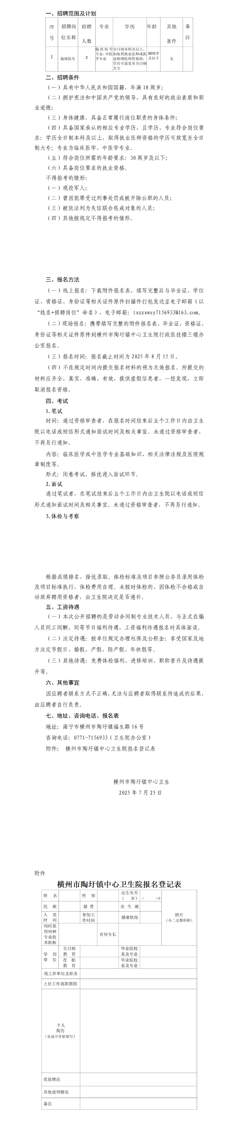橫州市陶圩鎮(zhèn)中心衛(wèi)生院公開(kāi)招聘編外衛(wèi)生專業(yè)技術(shù)人員的公告