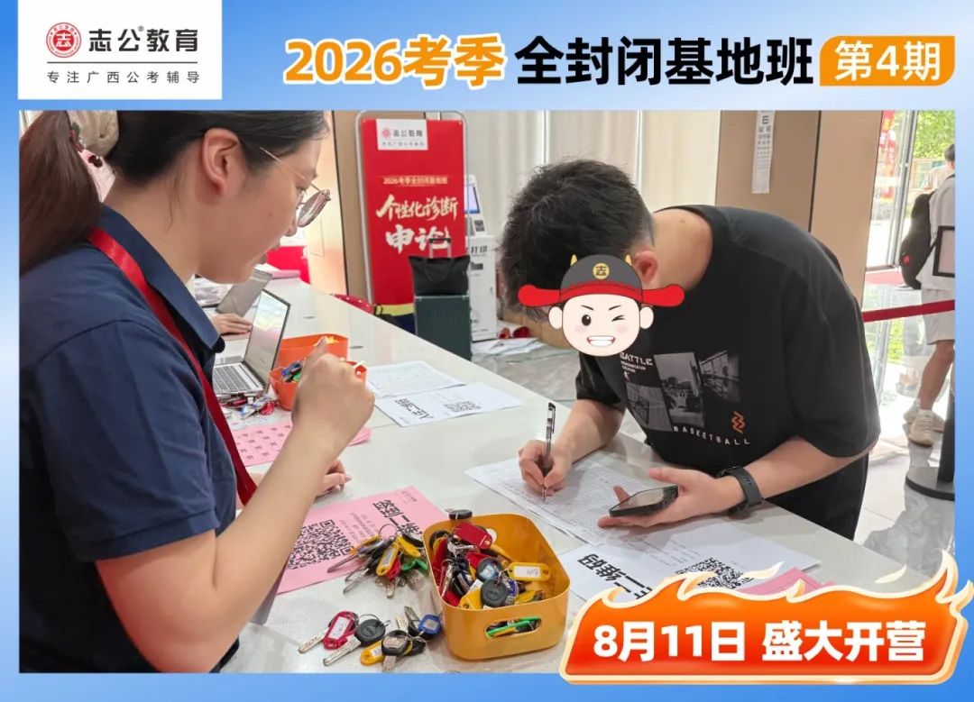 陽光明媚的一天,適合學習,早上10點,志公教育(中關村)全封閉基地的簽到區(qū)已經布置妥當,志公的班主任們早早到位,迎接每一位學員的到來。學員們滿懷期待,早早來到基地,為即將到來的學習之旅做好準備。簽到臺前,大家有序排隊,學員們依次領取到宿舍鑰匙、水卡等。班主任們細心核對信息,發(fā)放學員證和學習資料,確保每一位學員都能順利開啟接下來的學習生活。