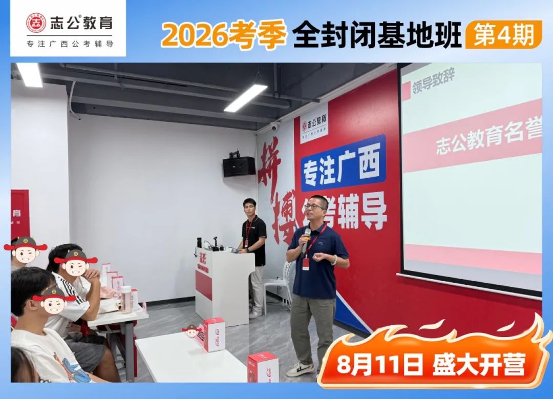 隨后,廣西志公教育財務部負責人、志公教育長線封閉學習基地第4期名譽班主任張翅上臺發(fā)言。面對臺下學員們那既忐忑又充滿信任的目光,張老師的話語中滿是對學員們的美好希冀,同時也表達了對學員們選擇志公教育的誠摯感謝,讓現(xiàn)場的氛圍愈發(fā)熱烈,學員們紛紛報以熱烈的掌聲,那掌聲中飽含著對未來學習生活的堅定信念。