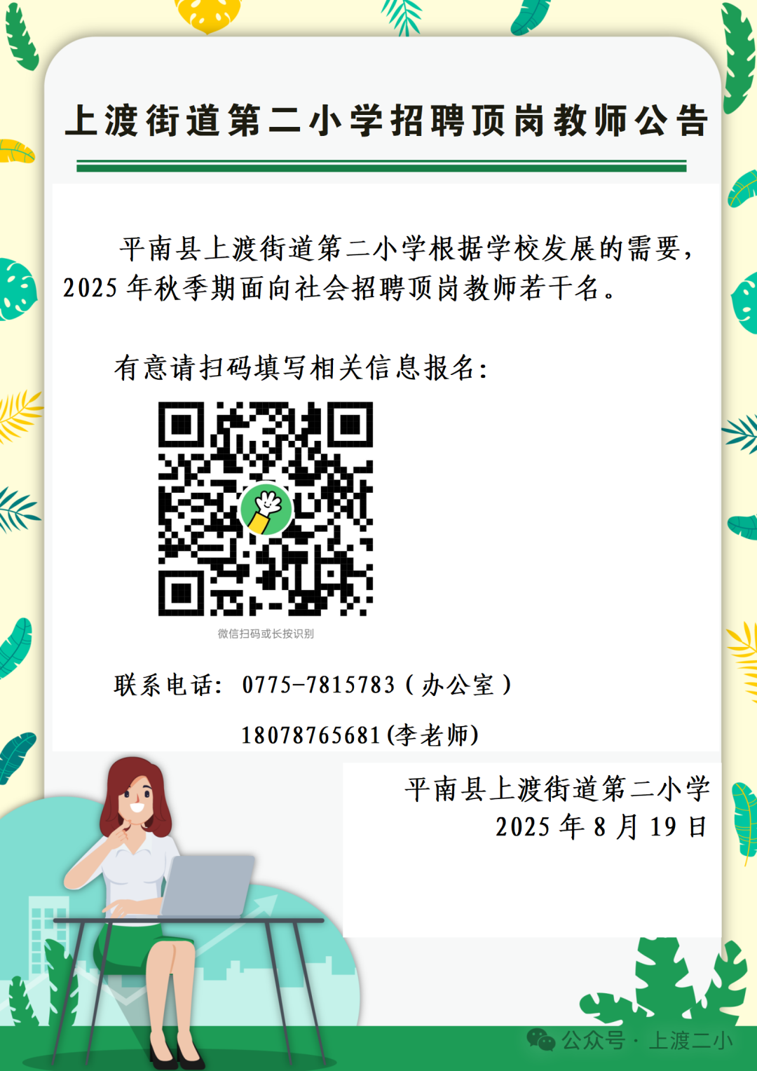 2025年貴港平南上渡街道第二小學秋季期頂崗教師招聘公告