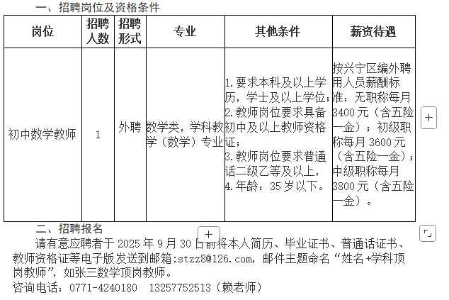 2025年南寧市興寧區(qū)三塘鎮(zhèn)四塘中學(xué)秋季學(xué)期招聘1人