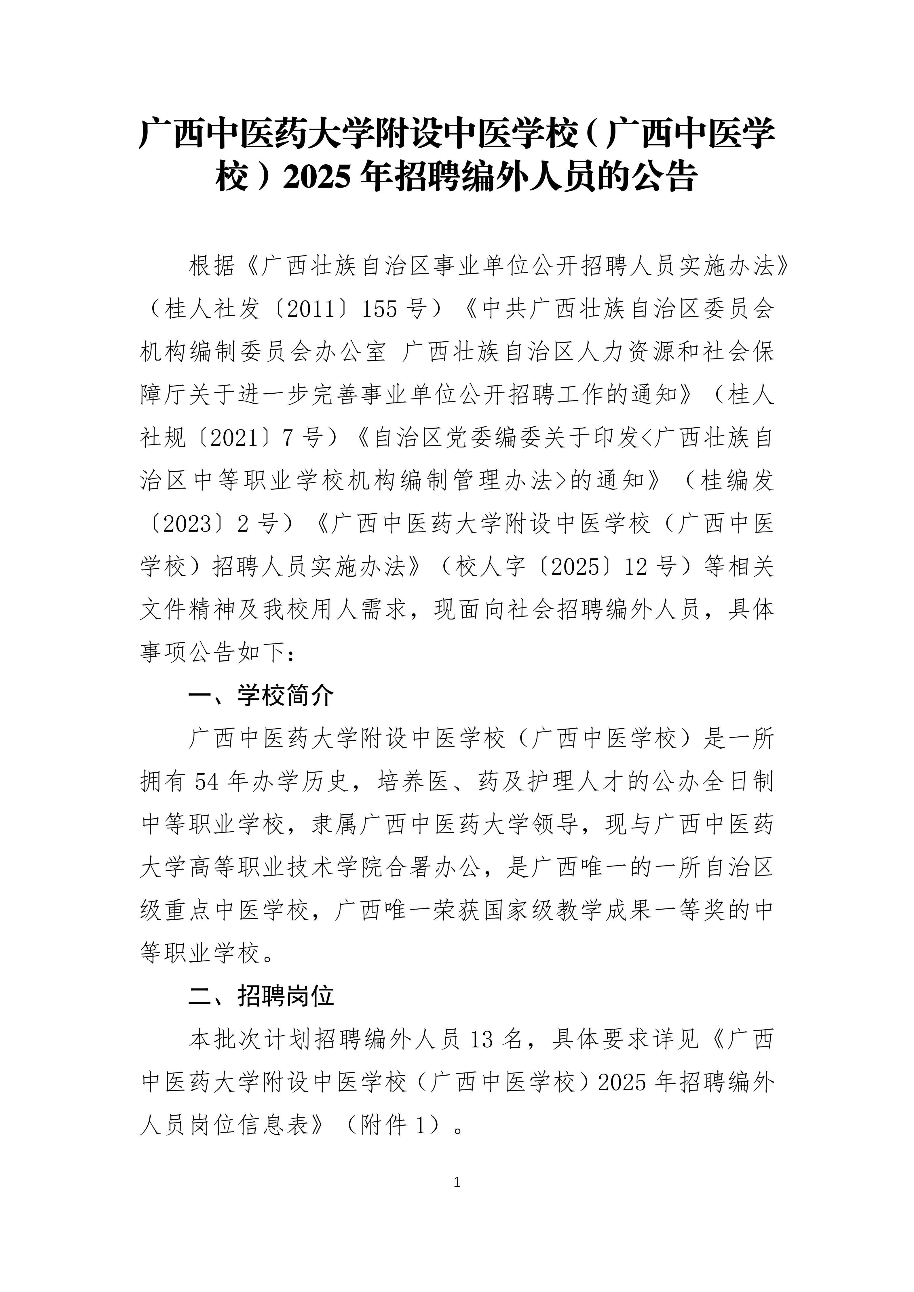 2025年廣西中醫(yī)藥大學附設中醫(yī)學校(廣西中醫(yī)學校)招聘編外人員13人
