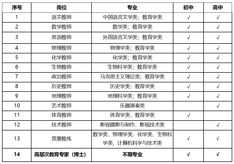 優(yōu)秀教育人才公開招聘崗位要求