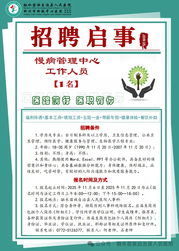 2025年融水苗族自治縣人民醫(yī)院招聘慢病管理中心工作人員1名