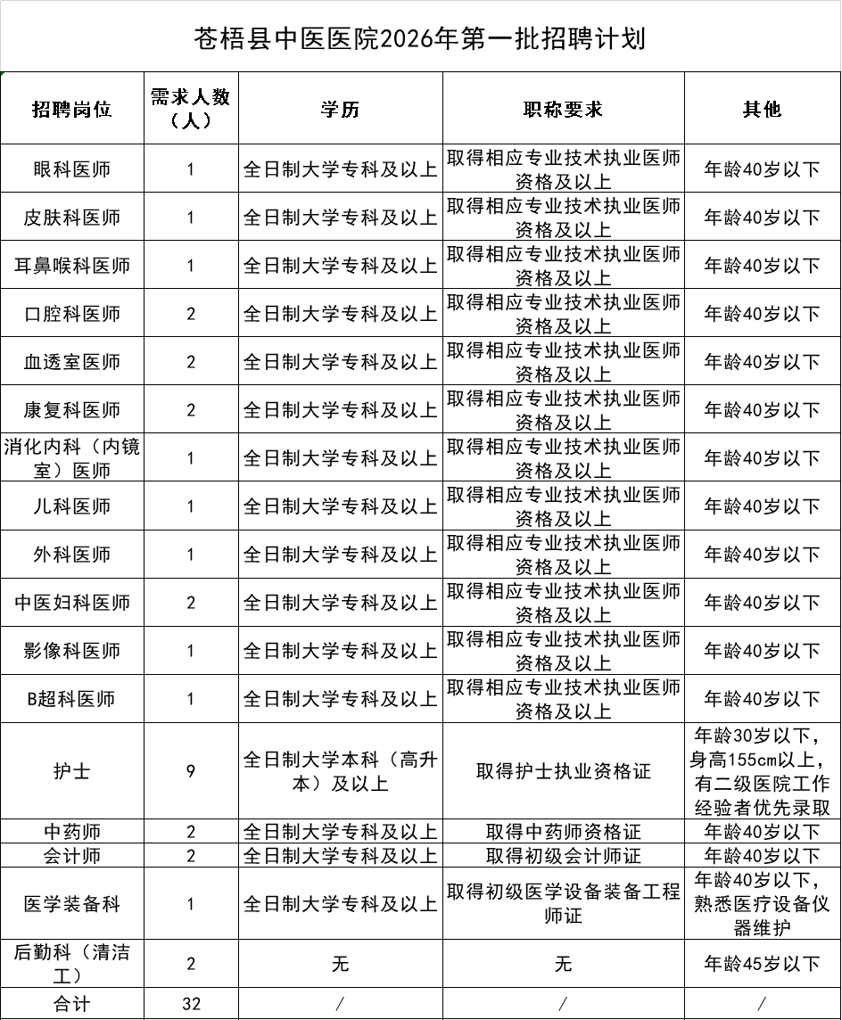 2026年蒼梧縣中醫(yī)醫(yī)院第一批人才招聘公告