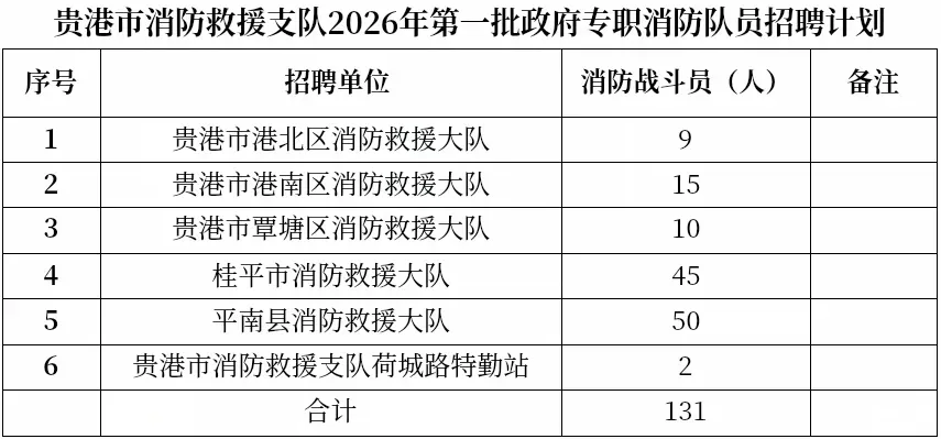 原文標(biāo)題:2026年貴港市消防救援支隊(duì)第一批次政府專職消防員招錄公告