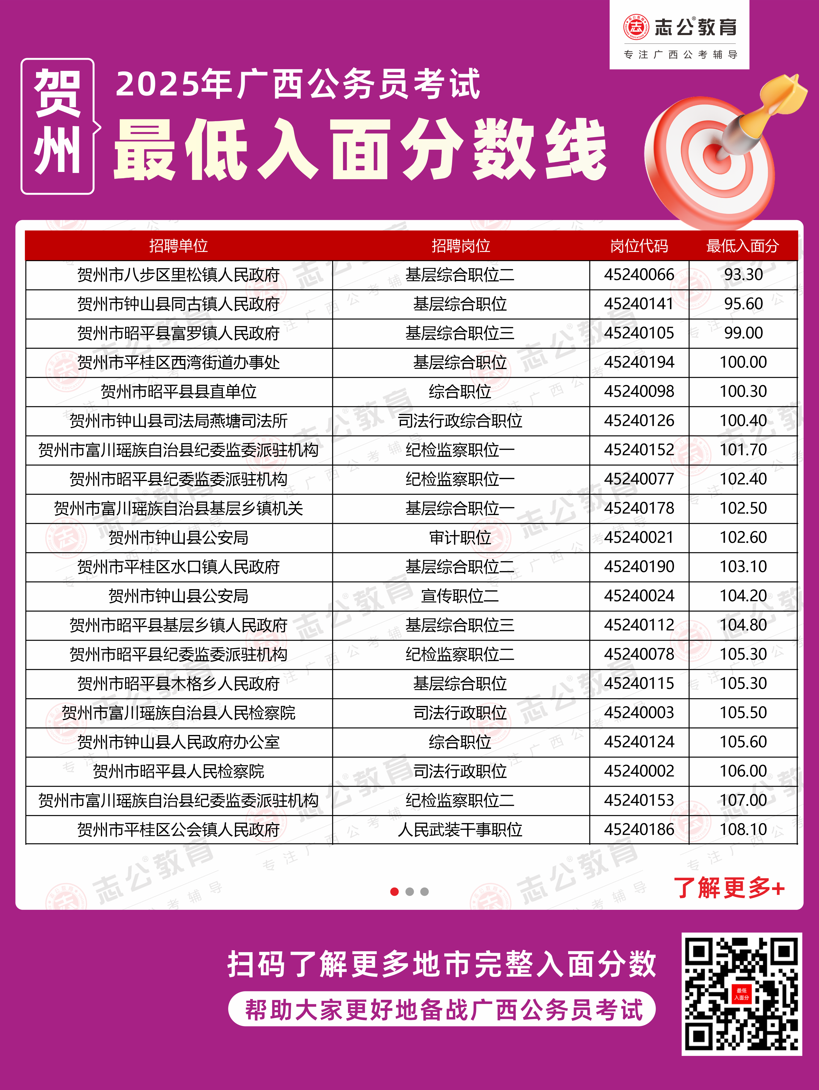 (點(diǎn)擊下載更多2025年賀州公務(wù)員最低入面分?jǐn)?shù),數(shù)據(jù)整理自官方發(fā)布的面試資格審查公告)