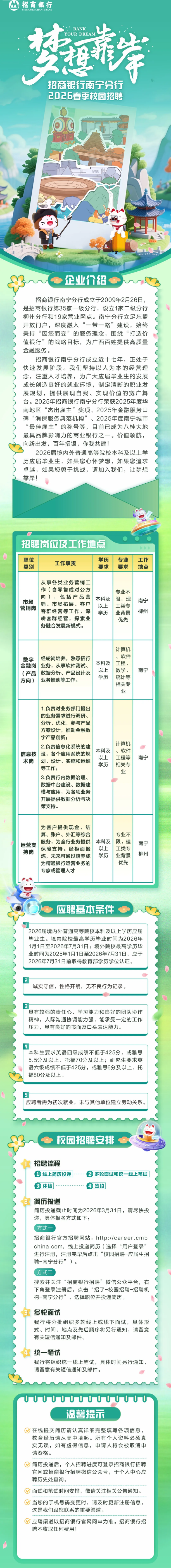 原文標(biāo)題:南寧|“夢想靠岸”招商銀行南寧分行2026春季校園招聘
